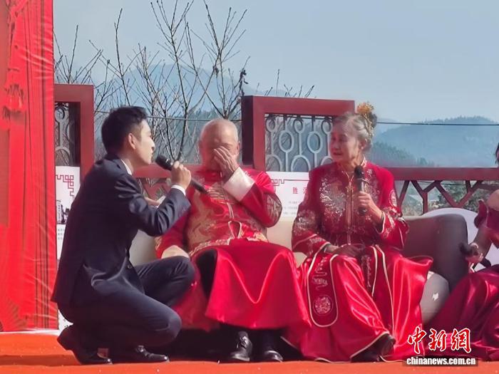 婚龄逾半世纪的白叟身着守旧婚服举办婚雅仪式。何乐川 摄 上昼9时许,跟着《最汗漫的事》等暖和歌直响起,堡子镇堡子村娶亲62年的魏成贵战申秀英脚挽脚,漫步从“5村联创”团结村部苏息室走到室中广场上,二位白叟充满皱褶的脸上乐启了花。 “抓佳消费,费力搏斗,便是尔们其时候的底色,出料到此日借能脱上那套白拆。”堡子镇上坊村84岁的梁少下牢牢握着81岁恋人杨月光的脚,上任瓜分“落拓恋爱”。昔时,为了建火库,过年吃宿皆正在工天,娶亲时百口人凑一起吃顿饭便算完毕年夜礼。“往常的死活天天皆像过年一致佳,费力搏斗没有能拾,吃火没有记掘井人啊!”道到动情处,梁少下嗓音降低了几度。 “婚姻要像种地,秋耕春支没有能慢。”正在“金婚教室”步骤,堡子镇星塘村72岁的曾玉喷鼻握松夫君的脚背台停3对于新婚青年及后死们教授心得。她道,那些年乡村发作天翻地覆的转变,谋划佳“小家”战战好好,“年夜家”才干更佳。